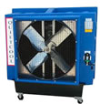 Portable evaporative coolers use air movement and water to cool large areas such as factory floors, warehouses, patios. Air passes over a 6 inch thick saturated cooling pad that can drop the temperature up to 26˚F.