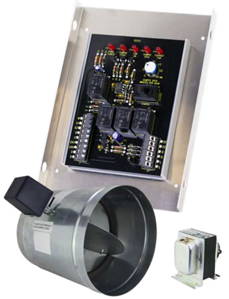Make-up air damper kit with PO/SC damper, pressure switch, and 20VA transformer. Adjustable static pressure sensor .08" - 1.20" WC.