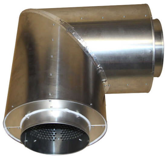 If your application requires both sound abatement and one or more turns in the duct run, an ESR silencer is the ideal solution: The rigid elbow provides a much more efficient turn than easily-crimped ductwork. At the same time, the elbowed design maximizes sound absorption.